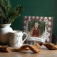 Rustic farm fresh Christmas trees family photo keepsake plaque. The plaque can be customized with the family name, the year, and the photo. brown chequerboard plaid background with rustic pine trees and snowflakes. The family name is displayed in a white banner. Artwork by Moodthology Papery.