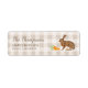 Destei's watercolor illustration of a brown hare rabbit together with some carrots. The background features a beige gingham pattern and there are two personalizable text areas including one for a name and another for the address. Ideal for Easter and spring, it also suits rustic, farmhouse, countryside and cottage styles.