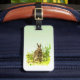 Make your luggage stand out on an airport carousel with unique tag designs! A cute brown bunny rabbit in the green grass. Another rabbit is on the back along with your own personal information. All text can be customized.