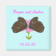 Painting of two beautiful brown butterflies sitting on a pink flower, printed on Save the date magnets. Easily customize the names and date on the template. To choose a different background colour, click on Customize It, then on Edit, then on Background, and then on the colour of your choice. Browse matching product sampling:
