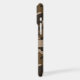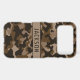 Customize this multi-hued brown camouflage iPhone 17 pro max case with your name in a trendy modern CAP font in dark brown on light brown. It's masculine and perfect for your favorite military, hunting, country or outdoorsman!