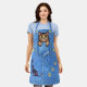 This fun novelty apron includes a faux (printed) denim / blue jean look and includes a cartoon brown kitty cat that appears as if it's sitting inside a pocket! The design also includes "patches" (printed) that resemble the silhouettes of a cat chasing a bird and three paw prints. Use the easy template to add your name or your cat's name to the design (or simply delete the sample name "Tabitha" to order without a name). These cute aprons make the perfect gift for any cat owner! They would also be fun for an animal groomer or vet.