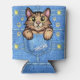 Brown Cat in Faux Denim Pocket with Custom Name Can Cooler