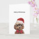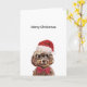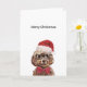 Christmas card from Brown Cockapoo. Brown Cockapoo wearing a bow tie, glass, and santa hat.
