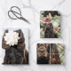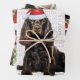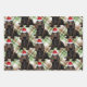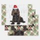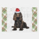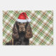 An adorable brown Cocker Spaniel dog is ready for the holiday season wearing a cute Santa hat and paired with a green holiday plaid on this set of gift wrap for the dog lover.