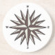 A traditional compass rose in brown and tan, with the four cardinal points marked, adorns this nautical-themed coaster for sailors, explorers, and other adventurers.