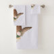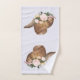 Towel set with a cute design created with watercolors featuring a brown cowgirl hat with a bouquet of pink flowers.