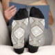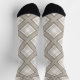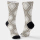 These unisex socks feature a diagonal plaid pattern in shades of brown, tan, cream and grey.