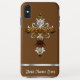 Superbe croix médiévale dans les tons brun et argent garniture métallique avec nom personnalisé, sur arrière - plan marron caramel. La couleur de police, le style de police et la taille de police sont personnalisables.