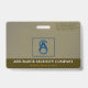 Professional ID badge for private security officers featuring your name, title, photo, QR code, ID number, and expiration date. Includes your company’s branding and contact details on the back. A sleek brown and gold design ideal for formal uniforms and site patrol.