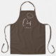 Custom chef apron feature cute chef script and hat with personalized name on brown background. Great personalized chef apron.
