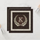 Pearl laurel wreath with pearl frame on a rich brown damask background.