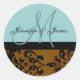 Brown Damask Wedding Blue Monogram Seal. Design by Elke Clarke©2010. Graphics licensed. Customize with your personal information and wedding colours.