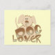 A little tan coloured dog and gradient faded brown text that reads "Dog Lover" is featured on these cute dog lover Tshirts, tote bags, mugs, mousepads, stickers, buttons, and more.