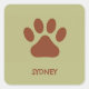 Brown dog paw custom name square sticker