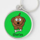 Brown dog with bone personalised on green keychain
