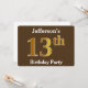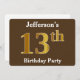 Brown, Faux Gold 13th Birthday Party; Custom Name Invitation
