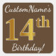 Brown, Faux Gold 14th Birthday + Custom Name Square Sticker