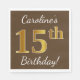 Brown, Faux Gold 15th Birthday + Custom Name Napkin