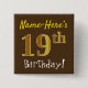 Brown, Faux Gold 19th Birthday, With Custom Name 2 Inch Square Button