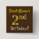 Brown, Faux Gold 2nd Birthday, With Custom Name 2 Inch Square Button