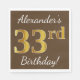 Brown, Faux Gold 33rd Birthday + Custom Name Napkin
