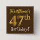 Brown, Faux Gold 47th Birthday, With Custom Name 2 Inch Square Button