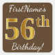 Brown, Faux Gold 56th Birthday + Custom Name Square Sticker