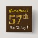 Brown, Faux Gold 57th Birthday, With Custom Name 2 Inch Square Button