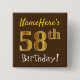 Brown, Faux Gold 58th Birthday, With Custom Name 2 Inch Square Button