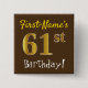 Brown, Faux Gold 61st Birthday, With Custom Name 2 Inch Square Button