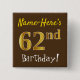 Brown, Faux Gold 62nd Birthday, With Custom Name 2 Inch Square Button