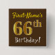 Brown, Faux Gold 66th Birthday, With Custom Name 2 Inch Square Button