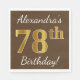 Brown, Faux Gold 78th Birthday + Custom Name Napkin
