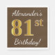 Brown, Faux Gold 81st Birthday + Custom Name Napkin