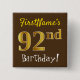 Brown, Faux Gold 92nd Birthday, With Custom Name 2 Inch Square Button