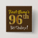Brown, Faux Gold 96th Birthday, With Custom Name 2 Inch Square Button