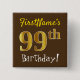 Brown, Faux Gold 99th Birthday, With Custom Name 2 Inch Square Button