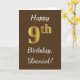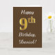 Brown, Faux Gold 9th Birthday + Custom Name Card