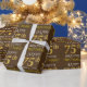 This wrapping paper design features a message like "HAPPY 75th BIRTHDAY", with the "75th" having a faux/imitation gold appearance. It also features a personalized name, and a brown coloured background. It could perhaps be used when wrapping gifts being given for somebody’s seventy fifth birthday. [~Z0000133]