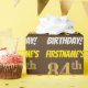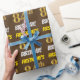 This wrapping paper design features a message like "FIRSTNAME’S 84th BIRTHDAY!", with the "84th" having a faux/imitation gold-like colour appearance, and with the name and "BIRTHDAY" in a fun, bold font. The name can be personalized, and the background is coloured brown. Wrapping paper like this could perhaps be used when wrapping birthday gifts being given to somebody in celebration of their eighty fourth birthday. [~Z0000211]