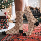 Celebrate the festive season with these brown gingerbread man polka dot Christmas socks. Featuring adorable gingerbread men and subtle polka dots on a cheerful brown background, these socks are perfect for adding a touch of whimsy to your holiday wardrobe. Ideal for cozying up by the fire or as a fun Christmas gift.