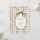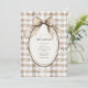 Brown and white gingham background with an oval frame with sweet vintage gingham bow flowing down on your event details Perfect for any season wedding.