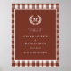 Brown Gingham Monogram Crest Wedding Welcome Poster