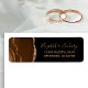 Le bord gauche de cette élégante étiquette d'adresse de retour de faire-part de mariage moderne comporte une bordure d'aquarelle marron mocha ornée d'une parties scintillant en faux or. Le texte personnalisable combine un script d'écriture manuscrite de couleur or et des polices de cuivre sur un arrière - plan noir.