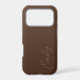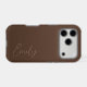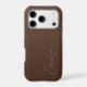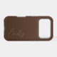 A trendy personalized brown iPhone case, with a soft gradient design and modern calligraphy script font.