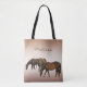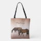 Easily personalize or remove the text on this tote bag features brown horses grazing on a warm summer day set on a bronze background.