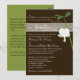 This simple modern brown, green, and ivory wedding invitation has a PRINTED faux wood grain band across the top that has the initials of the bride and groom on it, along with a single white bleeding heart flower and stem with leaves. There is also a love quotation in it that says: "Love does not consist of gazing at each other, but looking outward in the same direction". The text is fully customizable. It would work nicely for a rustic spring, summer, or autumn wedding or anniversary. ***PLEASE NOTE that if you change the font or size of the font, it may alter how your invitation prints. It will print the way you see it on your monitor, so if you have alignment issues, or sizing problems, please contact me for help. I will not see your invitation once you order it, and Zazzle will NOT edit anything (typos, alignment, etc.). If you require assistance or would like any other matching items, please email your request to niteowlstudio@gmail.com.