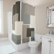 I wanted a shower curtain to match my new bathroom so I created this design using brown, grey, taupe and ivory shapes. Customers can move and resize each shape.