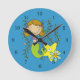 Brown Haired Mermaid Round Clock
